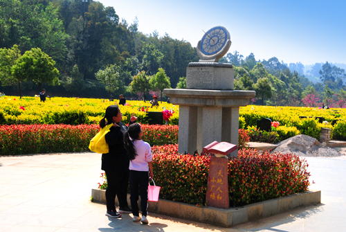 在天人合一景點正中,按照北京故宮太和殿前的樣式復(fù)制了一個日晷。太和殿前這個日晷,可以說是皇權(quán)對上天敬仰的標志性符號。而復(fù)制這個日晷,正是對古人“天人合人”理念的直觀詮釋。
