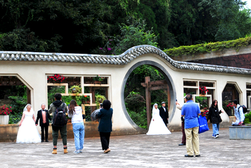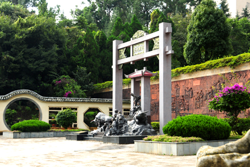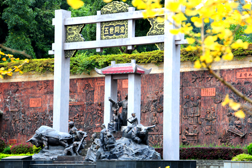 五世同堂親情廣場(chǎng)由主雕塑和背景浮雕兩部分組成,它以中國(guó)傳統(tǒng)文化為背景,展開了一個(gè)大家庭五世同堂的生動(dòng)畫面。