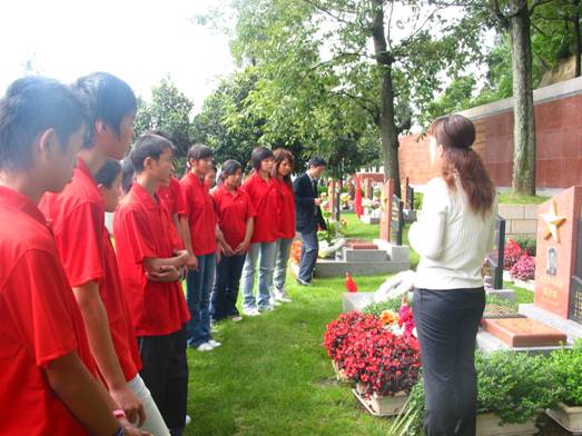 在全國戰(zhàn)斗英雄劉子林墓前為共青團員講解