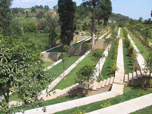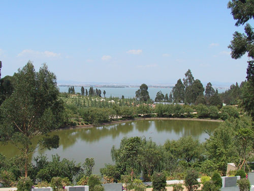 福園位于安樂(lè)園下段,背承龍脈,前望龜山,北側(cè)是潛龍福地廣場(chǎng),南側(cè)與藝術(shù)名人苑相望,窩風(fēng)藏水,福澤瑞祥。福園前方,環(huán)繞放生池的一泓清水,奇石扶岸,綠柳婆娑,由此形成的桃園觀瀑景區(qū),為游人提供了一個(gè)清靜的休憩之地。石上飛瀑濺玉,池中魚游龜戲,風(fēng)動(dòng)花影、桃李報(bào)春,足以讓人細(xì)細(xì)觀賞品味。