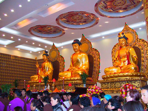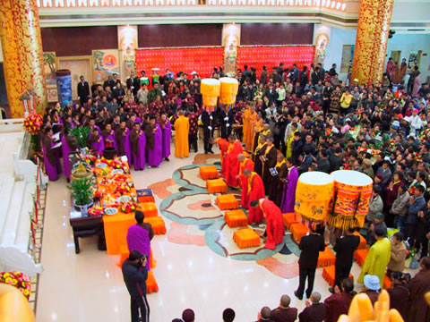 金寶塔每日進行早晚課,繞佛誦經(jīng)。