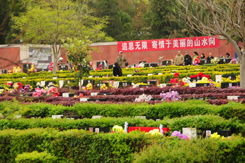 天頤園是金寶山首個茶園式風(fēng)格的墓區(qū)綠化嘗試,綠化特點(diǎn)是在墓位后面配置一排排綠籬,這些修剪整齊的綠籬恰如一排排椅背遮擋了墓碑,看上去好象是一片依山而下的茶園。在綠化樹種方面精心選擇了不同的植物,形成一個個色彩繽紛的區(qū)域,使墓區(qū)宛如一個多彩紛呈的大花園。綠籬的顏色隨著季節(jié)不同而發(fā)生變化,使得一年四季都顯得充滿生機(jī)。天頤園的墓型本著精巧實用的原則,有多種造型提供選擇,滿足了客戶的不同需求。天頤園這種茶園式的建設(shè)風(fēng)格,受到客戶的普遍歡迎,也廣受同行的好評。