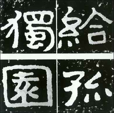 即《經(jīng)石峪》,在山東泰安。南北朝時(shí)刻于泰山一小瀑布下的大塊平整山石上,藏于水下約千年,后經(jīng)發(fā)現(xiàn),使泉水改道,才暴露出來。何人所作,至今尚無定論。字徑由一尺二,三到一尺七,八寸,現(xiàn)存一千零六十七個(gè)字,前人評為“大字鼻祖,榜書之宗”。康有為評為“榜書第一”。字形在楷法中兼含隸意,故有人稱為“隸楷書”。