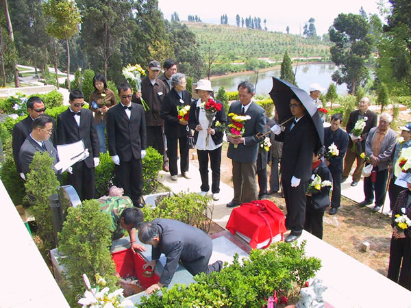 落葬當(dāng)天,由金寶山派車(chē)輛將客戶(hù)接到園區(qū)(人數(shù)超出合同約定請(qǐng)自備其它車(chē)輛)。在預(yù)定的安葬時(shí)間,由金寶山禮儀隊(duì)陪同親屬,從金寶塔或追思堂出發(fā)前往墓位所在區(qū)域,由司儀按預(yù)定的程序主持完成落葬大禮,儀式完成后,由家屬自行祭拜。