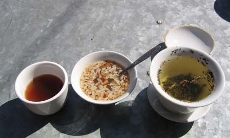 早晨,扒開頭晚用“子母灰”捂存得通紅的櫟炭火,在燒開水的同時,將質(zhì)地上乘的茶葉放在祥云特產(chǎn)的沙鍋茶罐里,借火烘烤,邊烘烤邊不斷地抖動,以使茶受熱均勻。當茶葉在茶罐中烤得色澤金黃并微微起煙時,將滾沸的開水往茶罐里一沖,隨著騰起的水霧,轟然一聲,好似雷聲沉沉滾過,故美其名曰“雷響茶”。“雷響茶”以聲音洪亮者為最佳。