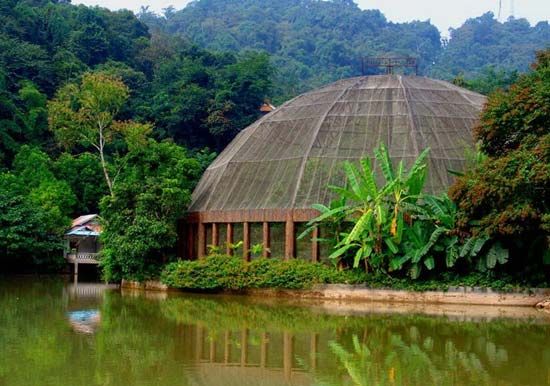 橄欖壩海拔530米,是西雙版納最低的壩子。瀾滄江蜿蜒而過,到處是一片濃綠,具有濃厚傣族建筑風(fēng)格的佛寺,一幢幢竹樓民居,掛映于綠蔭叢林和奇花異草之中,密林里珍禽異獸和睦相處,展示出一派迷人的熱帶自然風(fēng)光。