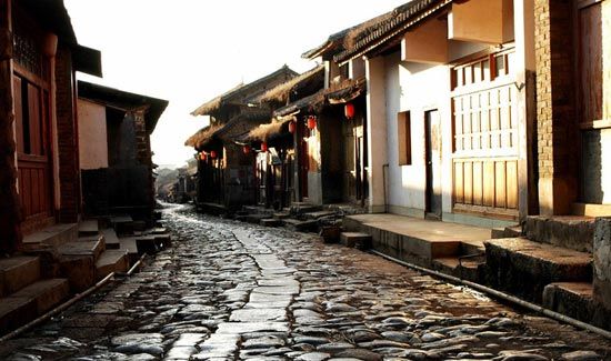 走進(jìn)這座古老的驛站,一條青石路從遙遠(yuǎn)的中原蜿蜒而來,穿過古鎮(zhèn)又逶迤而去,漸漸消失在茫茫的群山和云海之間。街道兩旁顯得十分陳舊而蕭條的鋪面和街心中的引馬石上依稀可見的馬蹄印仿佛在印證那段正在消失的歷史。一位年事已高的老掌柜依在自家年久失修的店門口,哼著憂傷的“趕馬調(diào)”,回味著那段不可磨滅的記憶……