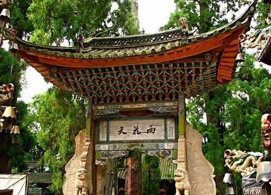四方街西面的興教寺有一個(gè)破損的石獅,它的身上有一個(gè)圓形小孔。據(jù)古鎮(zhèn)上的老人講,以前那個(gè)小孔里塑有大型紅色木杠,上面有一盞巨大的防風(fēng)雨油燈,由寺登村民輪流值守,每天一戶。到太陽落山的時(shí)候,值守戶往燈里加油、點(diǎn)燈,第二天早上再由該戶熄燈,并交給下一戶值守。這就是說,在以前茶馬古道相當(dāng)熱鬧的時(shí)候,無論刮風(fēng)下雨,寺登四方街夜夜通明,寺登古鎮(zhèn)不僅白天熱鬧,而且晚上也熱鬧。