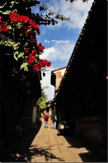 整個古鎮(zhèn)依山而建,面臨龍川江,進入的過道兩旁是仿古的建筑,門前都是一個臺子,是當(dāng)年做鹽業(yè)買賣的地方。門上“十星文明戶”的牌子,是“精神文明”的象征,嘿嘿!