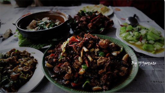 餐館很多,撿一家人氣旺的進去,窗臺曬的紅辣椒,重口味!