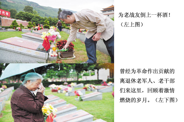 一身戎裝、胸前綴滿獎?wù)碌狞S龍生老人1951年從玉溪江川縣入伍,10年的軍旅生涯,改變了黃龍生老人的生活軌跡,也讓他格外看重戰(zhàn)友情誼。“我曾是陳康將軍的老部下。自從他安葬在金寶山的軍魂園后,我每年八一建軍節(jié)前,都要到這里來祭奠他。敬個軍禮、獻(xiàn)束鮮花,就代表著一個老戰(zhàn)士對昔日老首長的深切追思。”黃龍生老人表示。