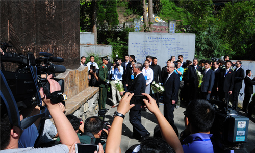 時(shí)值滇西抗戰(zhàn)勝利和騰沖光復(fù)七十周年之際,2014年6月12日,騰沖國(guó)殤墓園“中國(guó)遠(yuǎn)征軍抗日將士紀(jì)念碑”前氣氛肅穆,“2014中國(guó)遠(yuǎn)征軍抗日陣亡將士公祭活動(dòng)”在此舉行,緬懷在抗日戰(zhàn)爭(zhēng)中英勇捐軀的遠(yuǎn)征軍英烈,迎請(qǐng)和歸葬于緬甸南坎、八莫等地尋回的遠(yuǎn)征軍陣亡將士的部分遺骸和墓地壙兆土。全國(guó)政協(xié)原副主席、中國(guó)宋慶齡基金會(huì)主席胡啟立出席并致辭,中國(guó)國(guó)民黨榮譽(yù)主席吳伯雄出席并致辭,中共云南省委常委、省委統(tǒng)戰(zhàn)部部長(zhǎng)黃毅主持活動(dòng)。