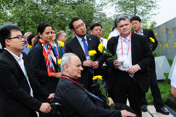 8月4日下午,金寶山藝術(shù)園林迎來(lái)了一批尊貴的客人,梵蒂岡教皇科學(xué)院院長(zhǎng)馬塞洛·S·索龍多,世界衛(wèi)生組織器官移植主管官員何塞·努涅斯,教皇科學(xué)院院士、國(guó)際器官移植協(xié)會(huì)前任主席、世界衛(wèi)生組織器官移植顧問(wèn)弗朗西斯·德?tīng)柲峥,?guó)際器官移植協(xié)會(huì)現(xiàn)任主席南茜·阿舍等國(guó)際器官移植界的頂級(jí)權(quán)威專(zhuān)家。風(fēng)塵仆仆的專(zhuān)家們特地來(lái)到這里,是為了向人體器官捐獻(xiàn)者敬獻(xiàn)鮮花、表達(dá)敬意。