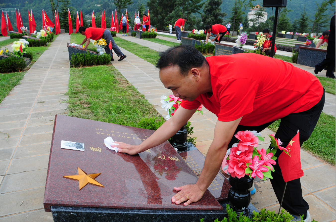 將3000余革命先輩的墓碑細(xì)心擦拭