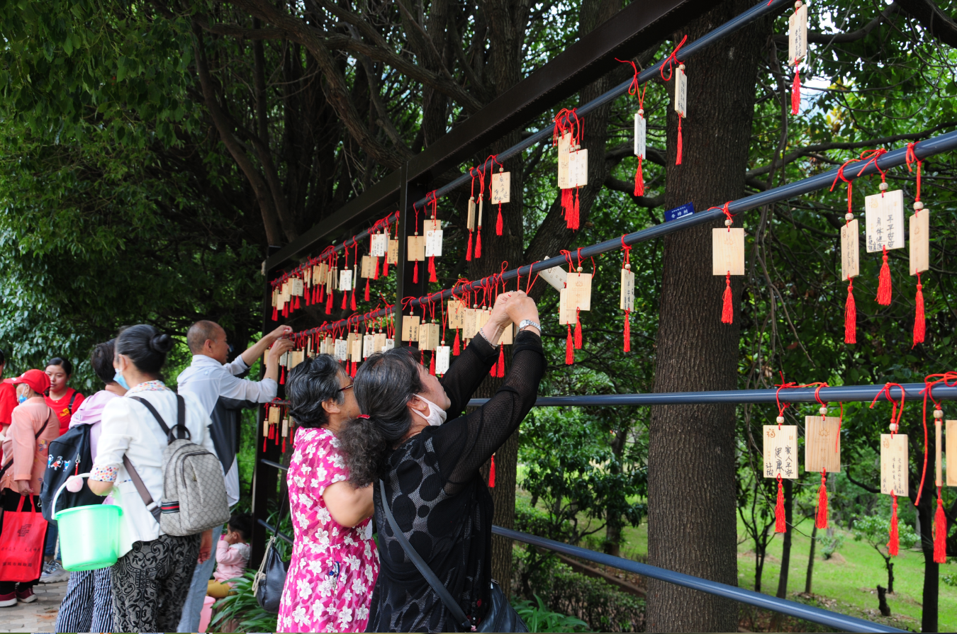 祈福牌、寄相思,在安樂園廣場,工作人員向大家免費(fèi)提供祈福牌,大家自行書寫寄語后,懸掛于祈福廊架上,“愿全家平安健康”“愿我的家人,天堂安好”……隨風(fēng)搖擺的祈福牌,有的寄托哀思,有的承載祈愿。