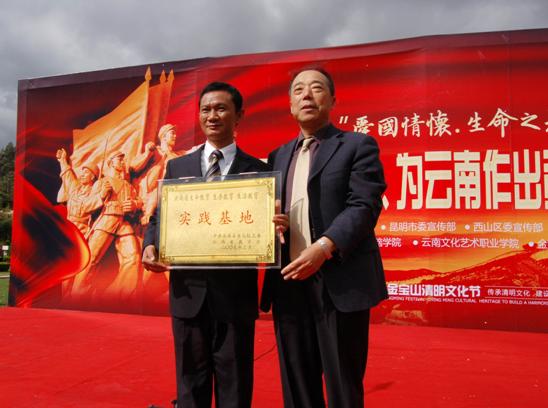 任建軍:金寶山建園九年來(lái),堅(jiān)持突出先烈先輩們的人文價(jià)值,搭建各種不同的活動(dòng)平臺(tái),形成了獨(dú)有的紀(jì)念文化體系,收到了較好的社會(huì)效益。黨和政府相關(guān)部門,對(duì)我們的工作給予了大力幫助和支持,并充分肯定了取得的成績(jī)。去年,中共昆明市委、昆明市人民政府授予金寶山“昆明市愛國(guó)主義教育基地”稱號(hào),今天,云南省教育廳又授予金寶山“三生教育實(shí)踐基地”稱號(hào)。這對(duì)我們的工作是極大的支持和鼓勵(lì),同時(shí)又是動(dòng)力。金寶山將更好地發(fā)揮愛國(guó)主義教育和三生教育功能,為構(gòu)建社會(huì)主義和諧社會(huì)貢獻(xiàn)自己的力量。