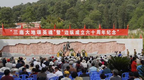 六十年彈指一揮間。7月18日,部分邊縱老領(lǐng)導(dǎo)、老戰(zhàn)士和金寶山員工600余人聚集在金寶山“邊縱英烈廣場(chǎng)”,舉行“三迤大地頌英魂”暨“邊縱成立六十周年紀(jì)念”活動(dòng),共同懷念為革命獻(xiàn)出寶貴生命的革命先烈,回憶邊縱那段光輝的戰(zhàn)斗歷史。
