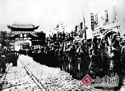 1949年1月1日,在三大戰(zhàn)役即將勝利結(jié)束之際,中國人民解放軍總司令部將戰(zhàn)斗在西南邊疆的一部分游擊部隊,合編為中國人民解放軍桂滇黔邊縱隊。桂滇黔邊縱隊的成立,極大地鼓舞了邊區(qū)廣大指戰(zhàn)員和各族人民,推動了各根據(jù)地的建設(shè)和發(fā)展。同年7月,根據(jù)中共中央的指示,成立了中共滇桂黔邊區(qū)委員會,區(qū)黨委將原桂滇黔邊縱隊和滇南、思普、滇東北、滇中、滇西北、滇西、滇北的游擊部隊,統(tǒng)一編為中國人民解放軍滇桂黔邊縱隊,下轄12個支隊、2個獨立團(tuán)。各部隊放手發(fā)動群眾,壯大人民力量,在解放大軍勝利進(jìn)軍的形勢下,在云南城市民主運動的配合支援下,經(jīng)過大規(guī)模的反圍剿斗爭,各根據(jù)地得到進(jìn)一步的鞏固和發(fā)展,逐步打通了根據(jù)地之間的通道,許多根據(jù)地連成一片。到1949年12月9日盧漢宣布起義前夕,邊縱主力部隊發(fā)展到45000余人,縣區(qū)游擊隊發(fā)展到10萬余人,解放了91座縣城,其中云南有61座縣城得到解放。在彌瀘根據(jù)地,先后解放了瀘西、彌勒、路南、邱北;在開廣根據(jù)地,解放了馬關(guān)、西疇、硯山、麻栗坡、廣南、富寧;在羅盤根據(jù)地,解放了羅平、師宗、陸良;在滇南根據(jù)地,解放了元江、石屏、紅河、元陽、綠春、曲溪;思普根據(jù)地解放了普洱、思茅、墨江、寧江、瀾滄、鎮(zhèn)越、江城、鎮(zhèn)沅、景谷、雙江、六順、車?yán)铮ìF(xiàn)景洪)、佛海、南嶠(現(xiàn)兩縣合并為勐?h)、勐臘;滇中根據(jù)地解放了峨山、新平、雙柏;滇東北根據(jù)地解放了宣威、會澤、威寧;滇西北根據(jù)地解放了劍川、麗江、鶴慶、永勝、洱源、蘭坪、碧江、福貢、貢山、云龍;滇西根據(jù)地解放了祥云、彌渡、牟定、姚安、元謀;在全省形成了農(nóng)村包圍城市的態(tài)勢。