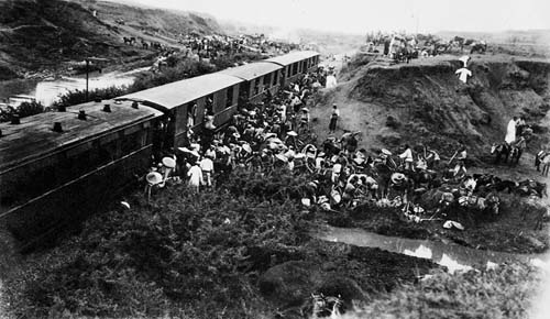 。ㄟ@是法國統(tǒng)計數(shù)字,當(dāng)?shù)孛耖g認(rèn)為死亡人數(shù)是7-8萬余人。這個數(shù)字并不算夸張,同時期1904-1014年美國挖掘巴拿馬運河死亡勞工7萬余人,二戰(zhàn)中日本驅(qū)使戰(zhàn)俘勞工修筑泰緬鐵路,造成16000名戰(zhàn)俘和十幾萬名勞工死亡,因而被稱為死亡鐵路。)