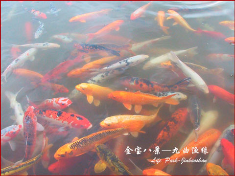 臨湖觀魚,數千條錦鯉躍波,五彩斑斕。“白金”、“黃金”、“紅白”、“大正”、“昭和”、“五色”等品種的錦鯉穿梭游曳,象無數枝彩筆在蔚藍的湖水中游走作畫,讓人心醉。